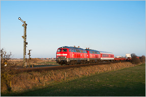 Hinter Morsum geht es in den Endspurt. Über die grünen Sylter Wiesen gelangt die Marschbahn nunmehr eingleisig nach Keitum und Westerland. Nach 207 km ab Elmshorn bzw 237 km ab Hamburg-Altona ist der "Hauptbahnhof" von "dieser Insel", zu der einem Ärzte-Lied zufolge alle immer zurückwollen, erreicht.