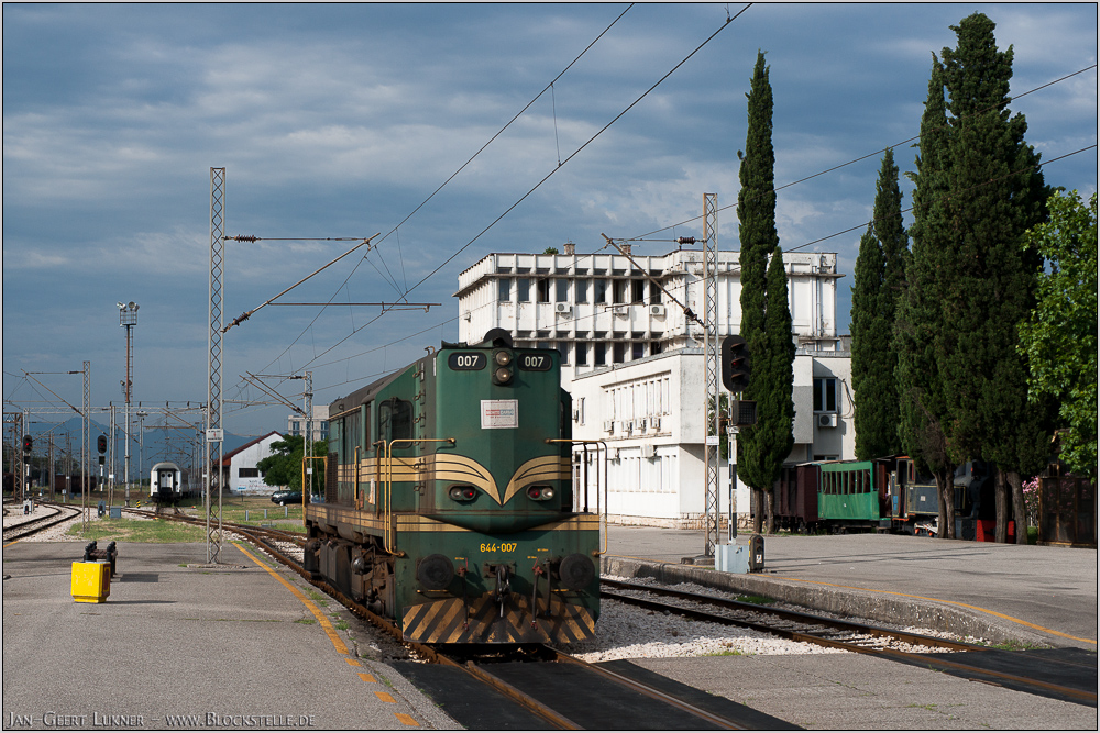 Ein sehr typisches Bild, das wohl jeder Bahnfotograf von der Montenegro-Reise mitbringt, ist das von der im Bahnhof Podgorica abgestellten Rangierlok. | |
