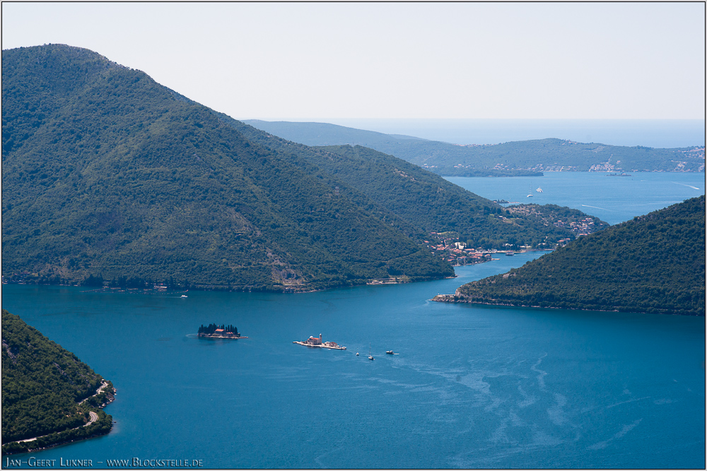 Die Straßen im Gebirge waren wunderbar leer gewesen, doch rund um Kotor und später hinter Tivat auf der Küstenstraße wurde der Verkehr richtig heftig. In Kotor regelten Polizisten an allen Zebrastreifen den Verkehr, sonst wäre dieser wohl zusammengebrochen. Und: Nein, wir haben uns nicht bei der Hitze von den Massen durch Kotor schieben lassen, auch wenn die Stadt wirklich einen tollen Eindruck machte. An der Küste ging es dann weiter mit den Landschaftsfotos.