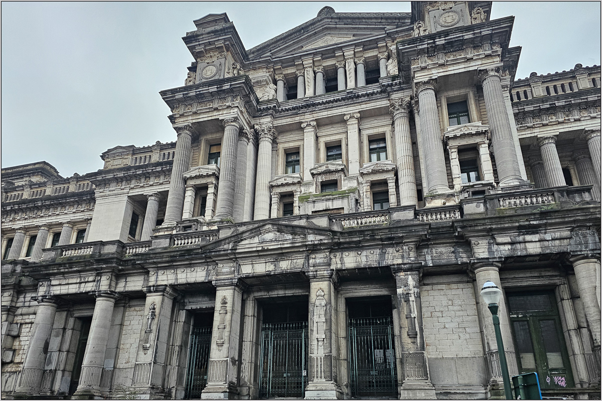Das Publikum des unmittelbaren Bahnhofsviertels war nun wie in Frankfurt am Main. Schnell weiter! In Marollen war es nicht so viel anders. Und baulich, nun ja, bei Sonne sicher sehr schön. Die schien aber nicht. Hoch über dem Viertel thront der Justizpalast. Wirklich ein imposantes Bauwerk - aus der Ferne. Direkt davor stehend schüchterte der Riesenpalast uns kleine Menschen mächtig ein, doch er schien verrammelt und verwaist zu sein. Eine Palastleiche sozusagen.