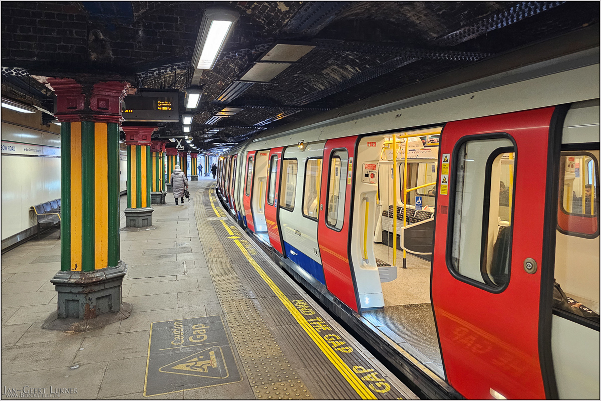 In Highbury&Islington stieg ich in die Windrush Line um, die nun wieder mit Stromschiene betrieben südwärts startete. Teils ging es auf interessanter Viaduktstrecke zwischen den Häusern durch. Hinter der Station Shoreditch High Street ging es auf der vorgestern zu Fuß unterquerten Brücke über die Brick Lane hinüber. In Whitechapel gab es den letzten Umstieg auf die Hammersmith&City tube line und gegen 16:40 erreichte ich dann doch schon zügiger als erwartet Aldgate East und das Hotel.