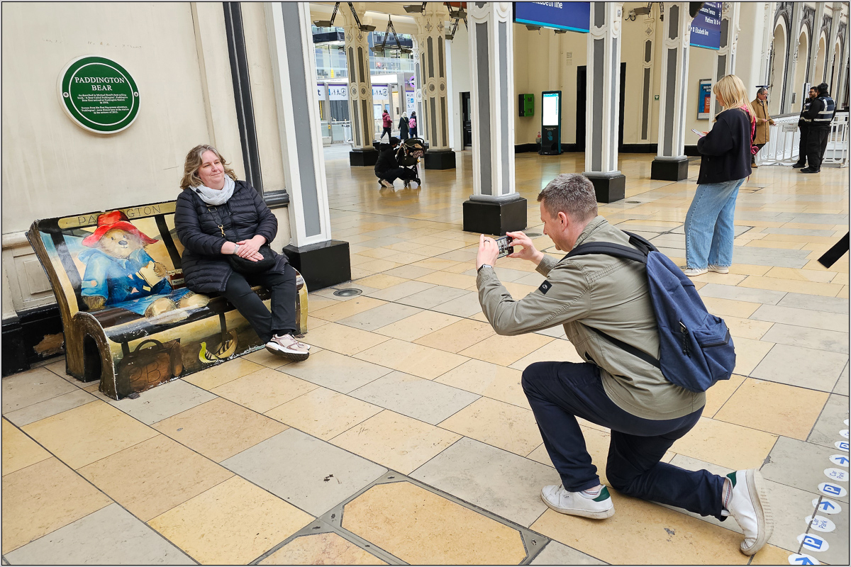 Dann wollten wir mal "as quick as possible" von einem Ende Londons ans andere fahren bzw wir wollten einfach die neue Elisabeth line ausprobieren. Von Canary Wharf ging es nach Paddington. "Unerwarteterweise" war das Fahrgefühl nicht anders als in jeder anderen Tunnelbahn. Aber rasant war es definitiv! In Paddington dödelten wir ein wenig rum, folgten einigen durch den Bahnhof führenden Bärentatzenabdrücken und setzten uns in ein Café.