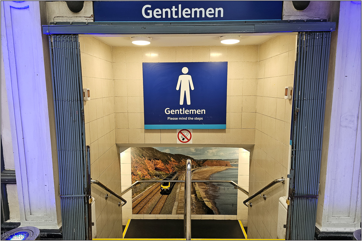 Die Bahnhofstoilette von Paddington hängt voll mit Riesenpostern der Devon Seawall, zu der die Züge hier abfahren.