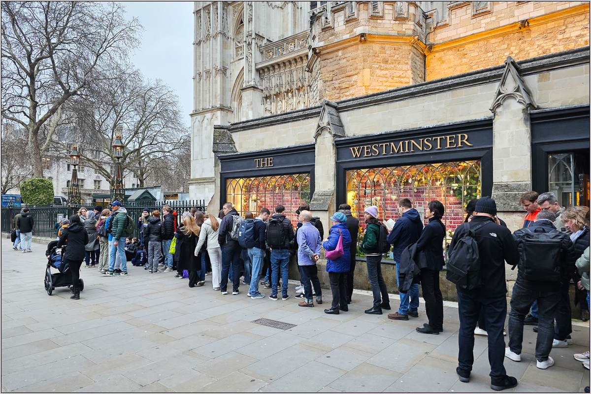 Queuing vor der Westminster Abbey.