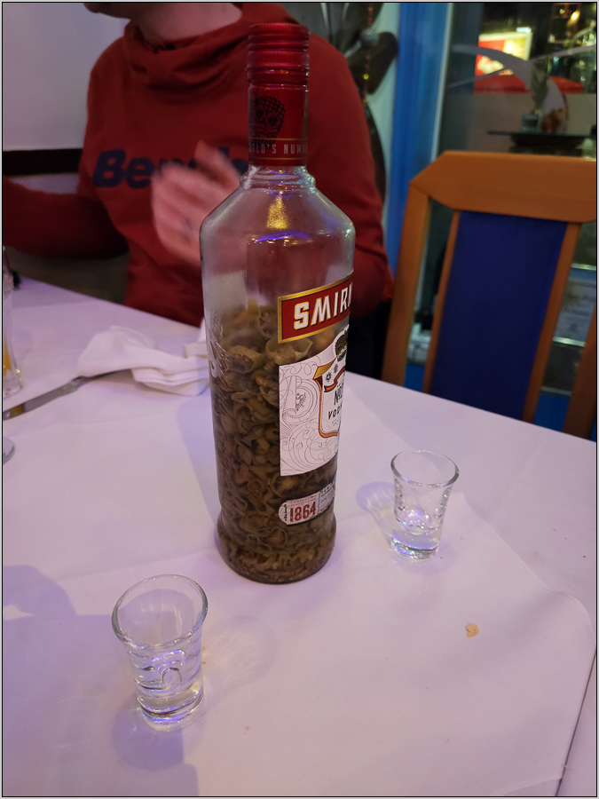 Sah fies aus, war er auch: Der selbstgemachte Chili-Wodka unseres Wirtes.