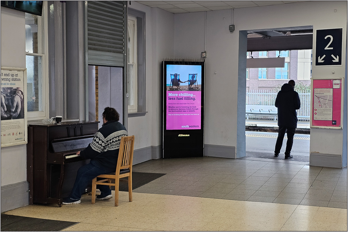 In der Bahnhofshalle von Lewisham steht ein Klavier zur freien Verfügung.