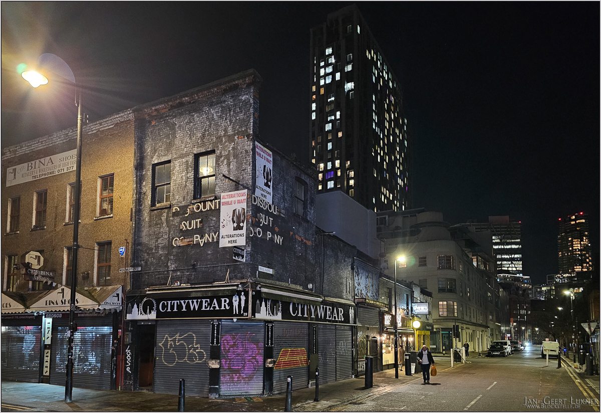Langsam kehrte das Hüngerchen ein. Wir wollten uns was in Hotelumgebung suchen. Mit der District line gelangten wir schön zügig wieder nach Aldgate East. Faszinierend fand ich auch an dieser kleinen U-Bahn-Haltestelle den Personalreichtum: Nicht nur die Sperren an beiden Enden waren mit Personal besetzt. Darüber hinaus gab es sogar ein Office, wo paar Mitarbeiter und Wachleute Dienst schoben.