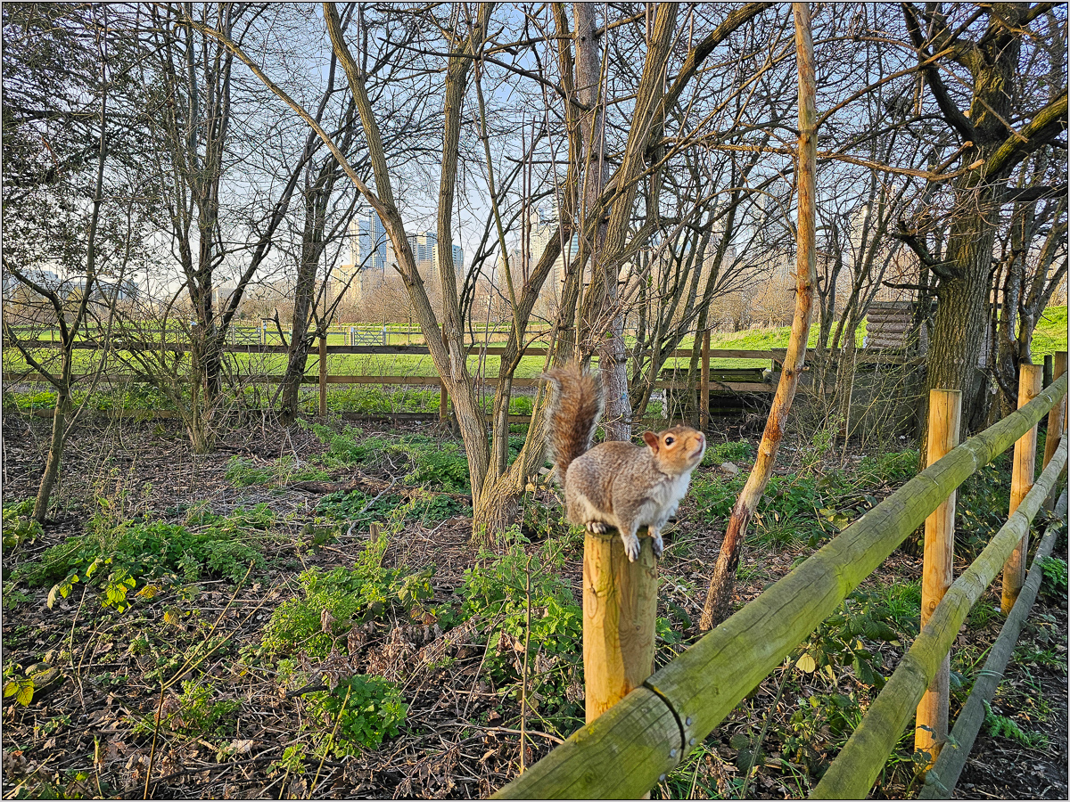 Von Deptford Bridge gab es einen Bus bis in den Greenwich Park. Dort liefen wir zum Royal Observatory. Je weiter man kam, desto mehr war von der tollen Aussicht zu erkennen, die man von dort hat. Die hiesige Stadtkulisse bestand am auffälligsten aus den Wolkenkratzern am Nordende der Isle of Dogs, einer Halbinsel in einer Themseschleife, rund um den Canary Wharf Tower. Die Wolkenkratzer bei der Towerbridge, die wir gestern gesehen hatten, waren ganz in der Ferne zu erkennen. Nun teilten wir uns auf: Die anderen Jungs wollten eine Runde Seilbahn fahren, Maren lief zum Museum runter und ich blieb erstmal hier, um auf Sonne zu warten. Es zeigten sich nämlich am Himmel gerade paar Auflockerungen.