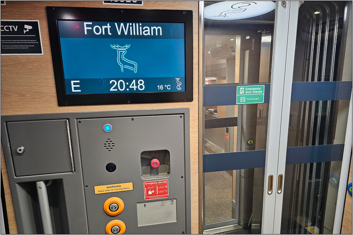 Für Nachtzugverhältnisse habe ich topp geschlafen. Unterlage und Bettzeug waren sehr gut. Ich habe nichtmal den Aufenthalt in Edinburgh mitbekommen. Aufgewacht bin ich danach, als leider ziemlicher Dieselgeruch in das Abteil zog. Wir waren jetzt direkt hinter den Loks. Das war nicht so angenehm, kam aber punktuell immer mal wieder vor. An den Halten hörte man strömenden Regen auf das Wagendach prasseln.