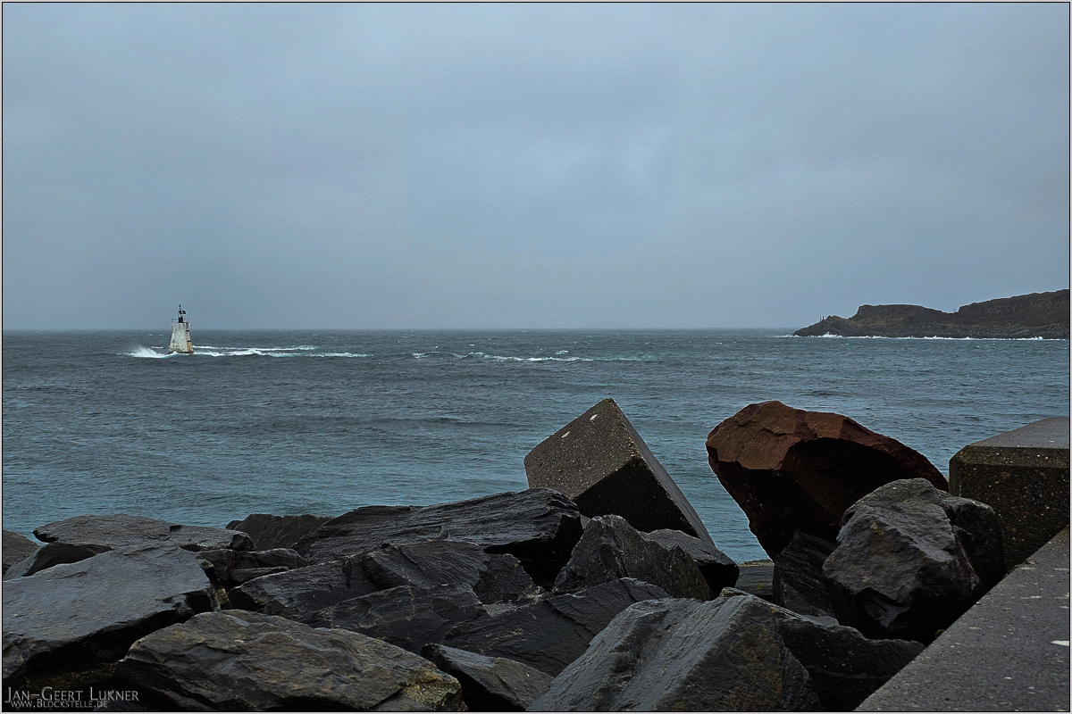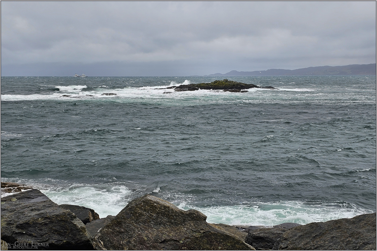 Dabei kam ich mit einem deutschen Paar ins Gespräch. Die beiden waren nur für einen Tag rübergekommen und berichteten von einer üblen Hinfahrt mit viel Seegang. Zurück hatten sie den zweiten (letzten) Bus um 15:30 ab Bf Newcastle zur Fähre genommen. Der war mit ähnlicher Verfrühung losgefahren wie unserer. Ob die Uhr des Fahrers falsch ging? Die des Käptns auch. Wir legten mit -30 ab. Waren wohl alle da.