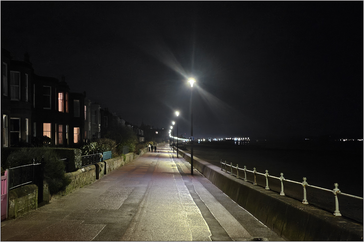 Der Class 170 Triebzug war brechend voll. Die Leute standen sogar in den Gängen. Egal, weit mussten wir ja nicht. Und nach sieben Minuten Fußweg war das Hotel erreicht. Die Zimmer waren prima, das Haus mal wieder ein Altbau von der extrem verwinkelten Sorte. Nach dem Bezug der Zimmer entschieden wir uns spontan zu einem "kleinen" Spaziergang runter zum Ufer des Firth of Forth, aus dem dann sogar ein ausgedehnter Strand- und Promenadenspaziergang wurde. Das hübsche Wohngebiet mit den bekannten, bestens gepflegten Reihenhäuschen ging direkt bis an die Promenade ran.