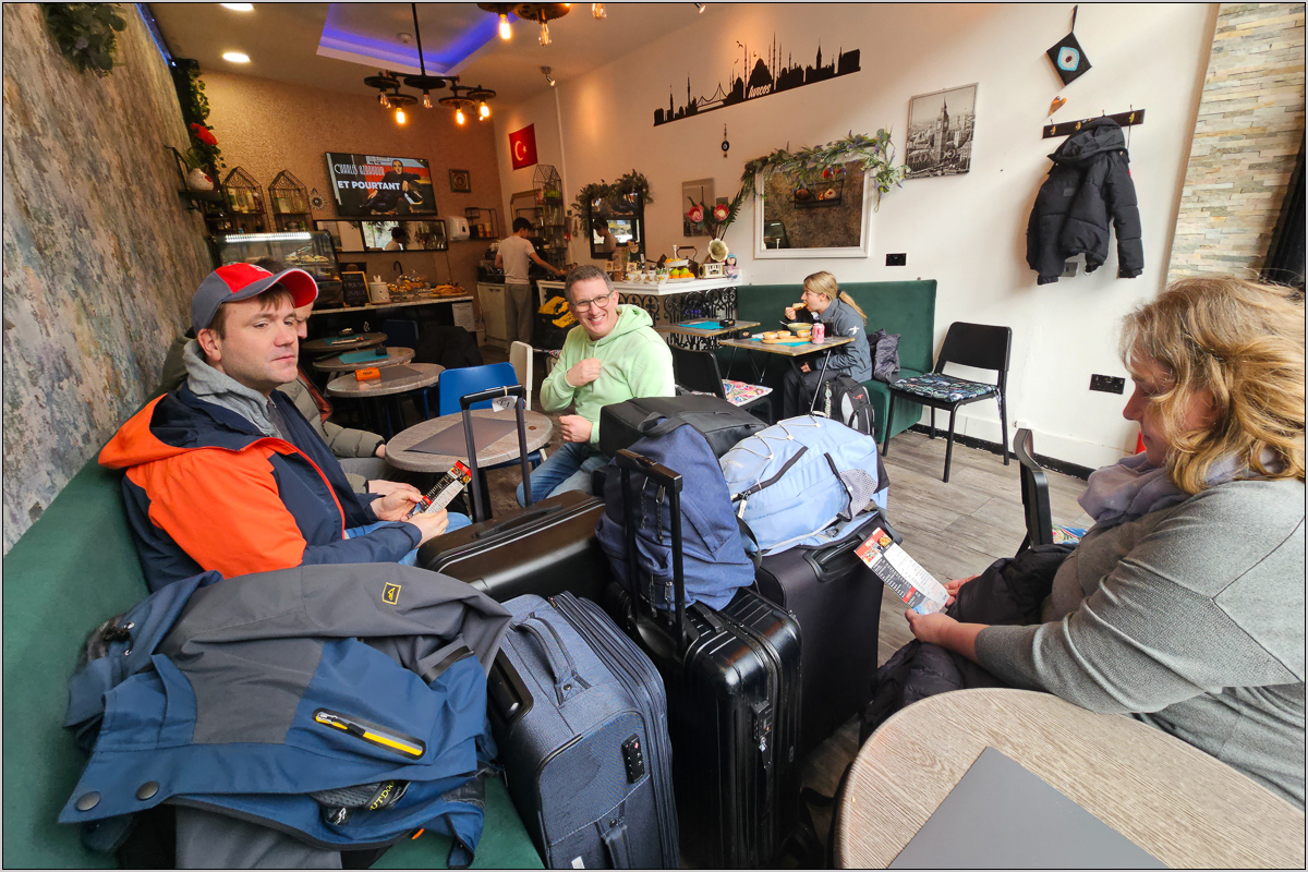 In Newcastle wurden wir von den drei anderen empfangen und gemeinsam ging es noch für ein Heißgetränk erst zu Starbucks und dann, weil dort kein Platz war, in ein kleines Café daneben, wo zum Glück auch für unsere Koffer genügend Platz war.