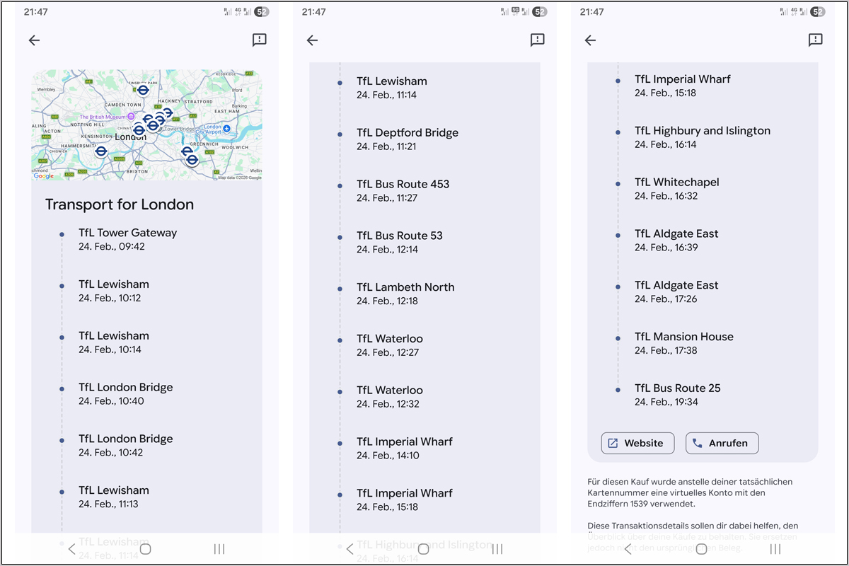 Leider waren die Aufrisse in Lewisham dann aber doch kleiner als erhofft. Für nix hier rumzustehen, dafür war mir die Zeit einfach zu schade. Ich schwenkte um auf Bewölkungsprogramm. Wir hatten gestern an der DLR-Station Deptford Bridge gesehen, dass hier eine Buslinie nach Marylebone startet - einmal quer durch die Stadt. Das war nun mein Programm. Mit der DLR ging es die zwei Stationen zurück. Und im 453er Bus bekam ich auch wunderbar den Platz oben in der ersten Reihe.