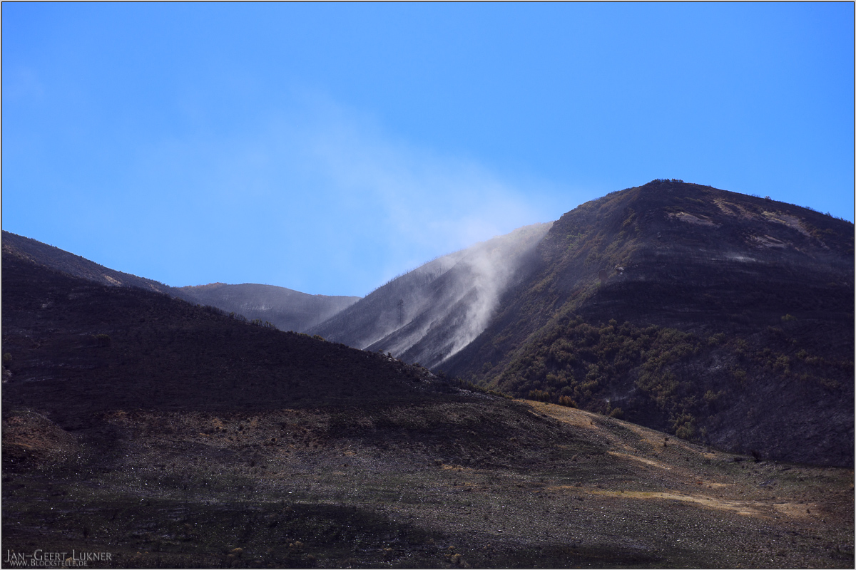 Aktivität gab es eher in den Wäldern: Die Waldbrände waren der Passhöhe schon ganz schön nahe gekommen.